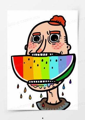 2. 插画:插画类的吃瓜图片更加精致,画面丰富,适合用作头像、背景等。